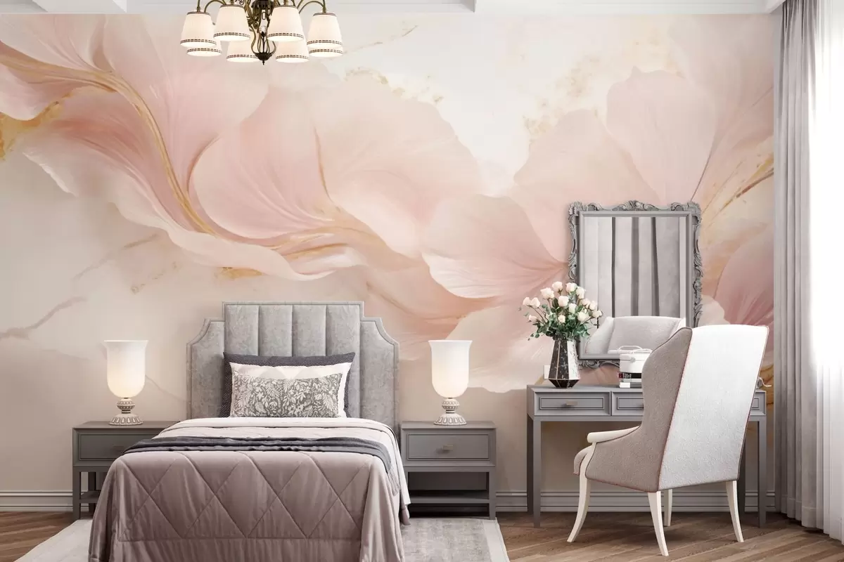 Fototapetak Halvány rózsaszín virágok világos háttér előtt Nr. w05357