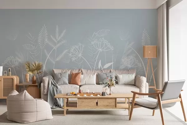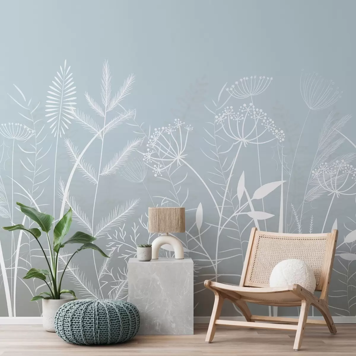 Fototapetak finom, kézzel festett vadfüvek és virágok szürkéskék háttér előtt Nr. w05383