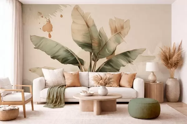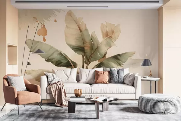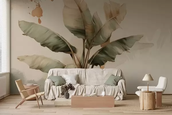 Fototapetak egy nagy, festői banánlevél-csomó retro stílusú foltokkal Nr. w05384