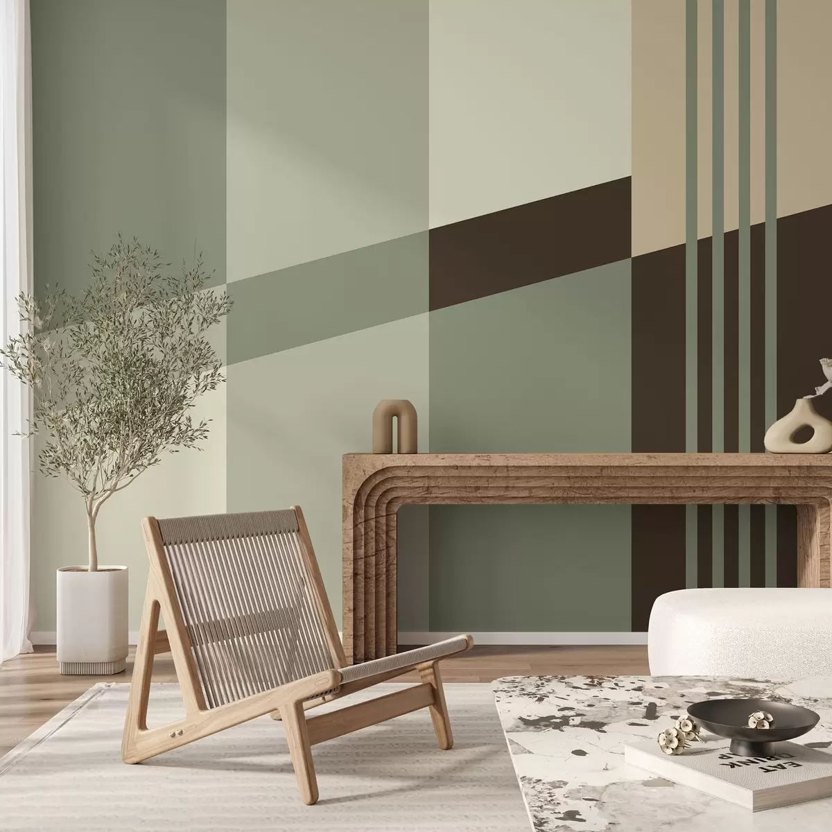 Fototapetak Visszafogott geometrikus minták olíva-, bézs- és barna árnyalatokban Nr. w05390