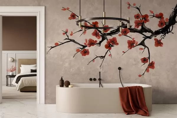 Fototapetak Keleties stílusú virágos ág bézs háttér előtt Nr. w05425v4