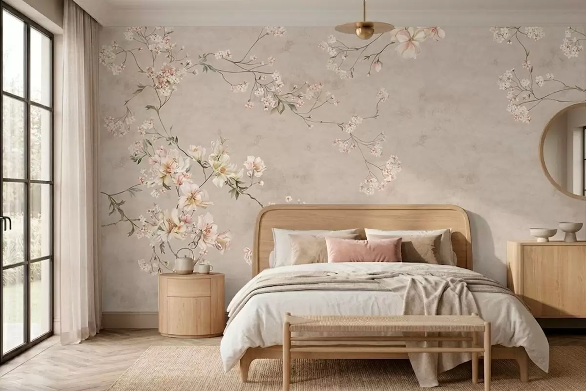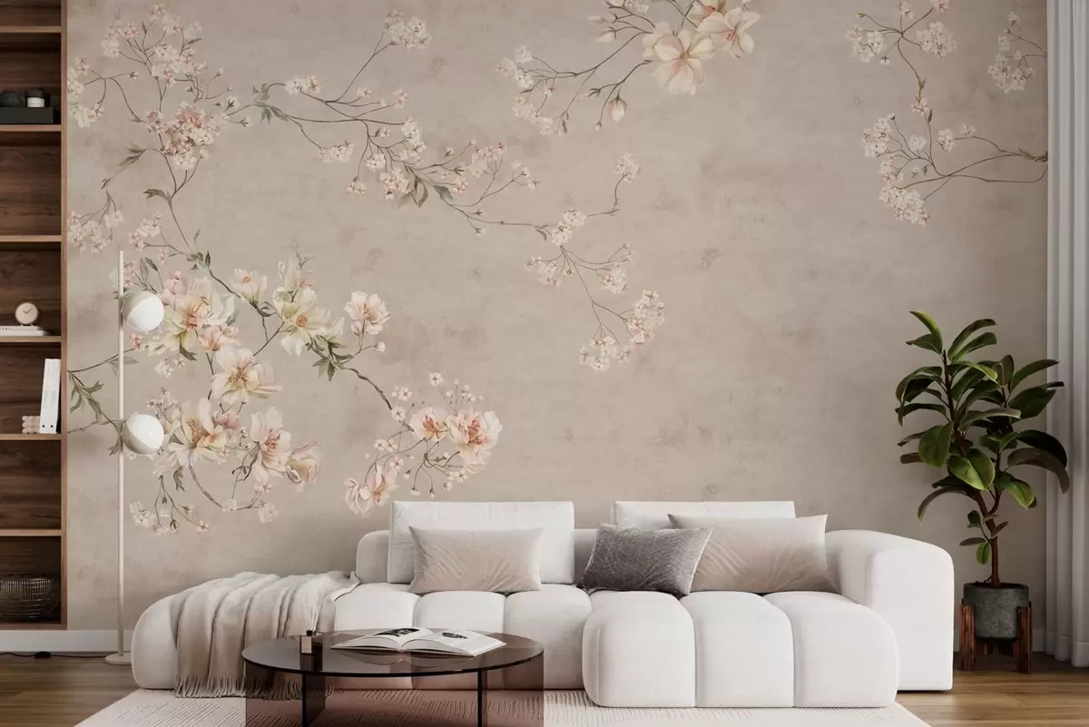 Fototapetak Kínai stílusú, finom virágos ágak világos háttér előtt Nr. w05427