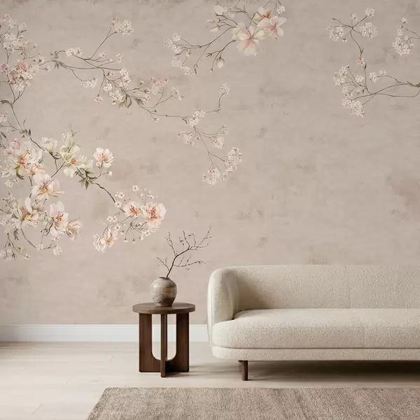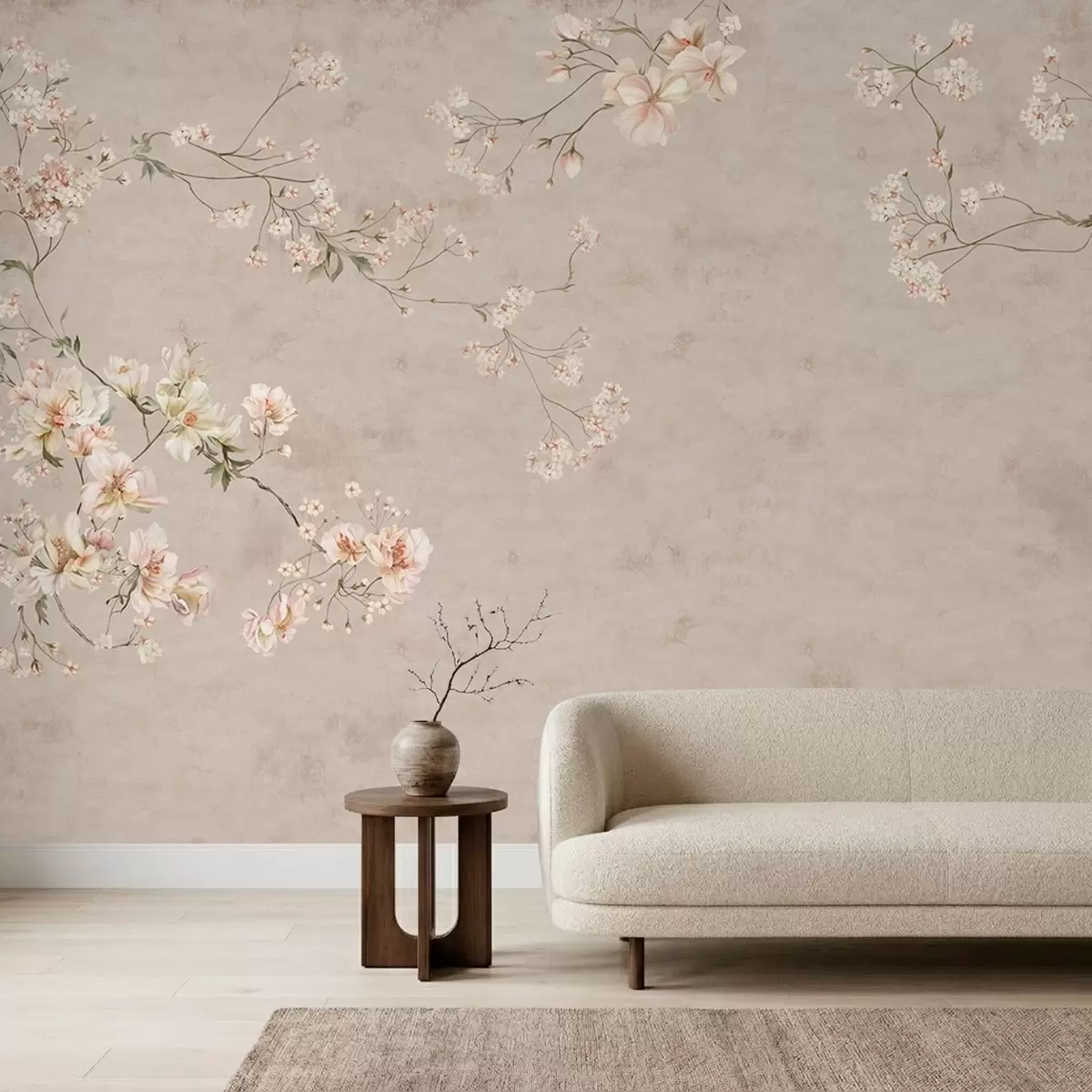 Fototapetak Kínai stílusú, finom virágos ágak világos háttér előtt Nr. w05427