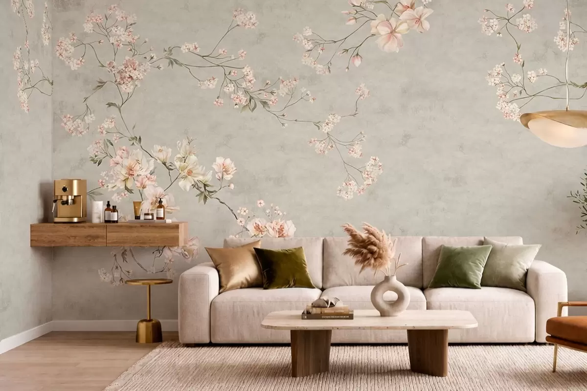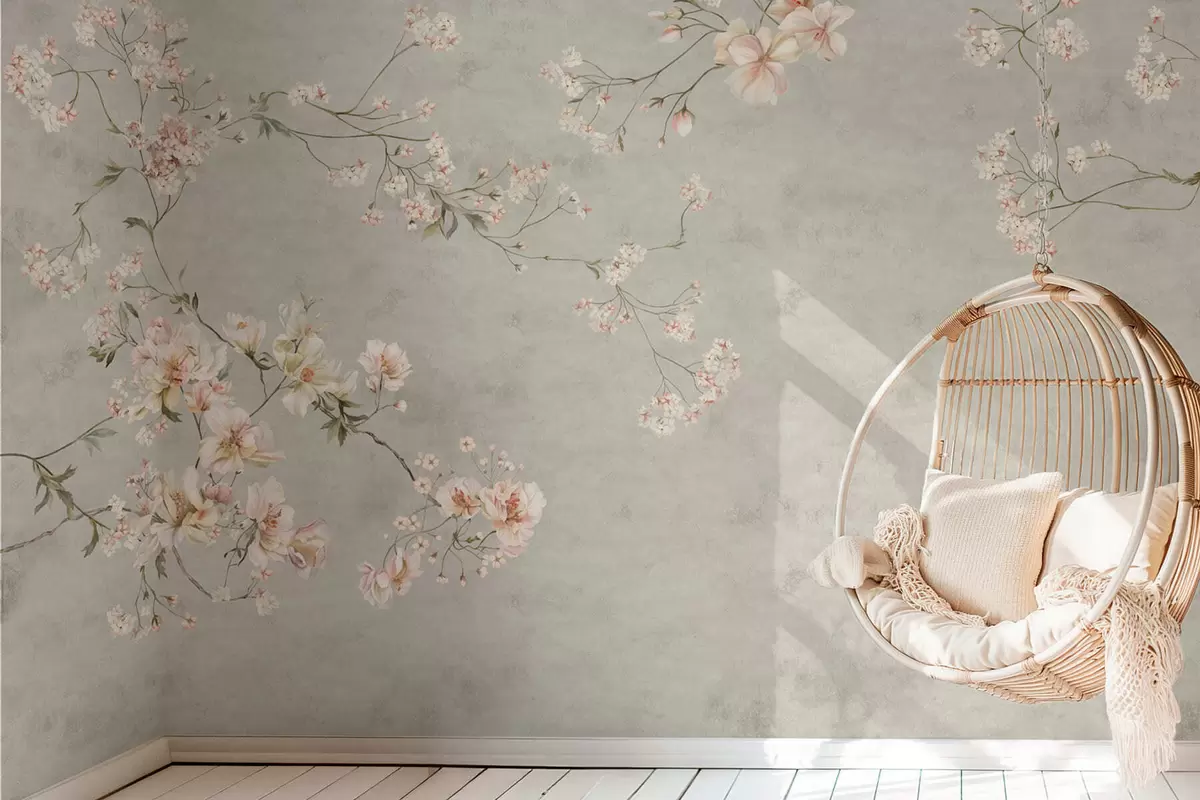 Fototapetak Kínai stílusú virágos ágak szürke háttér előtt Nr. w05427v1