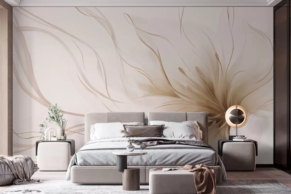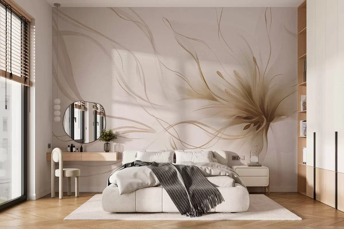 Fototapetak Absztrakt bézs színű virág, áramló vonalakkal, a Fluid Art stílusban Nr. w05428v2
