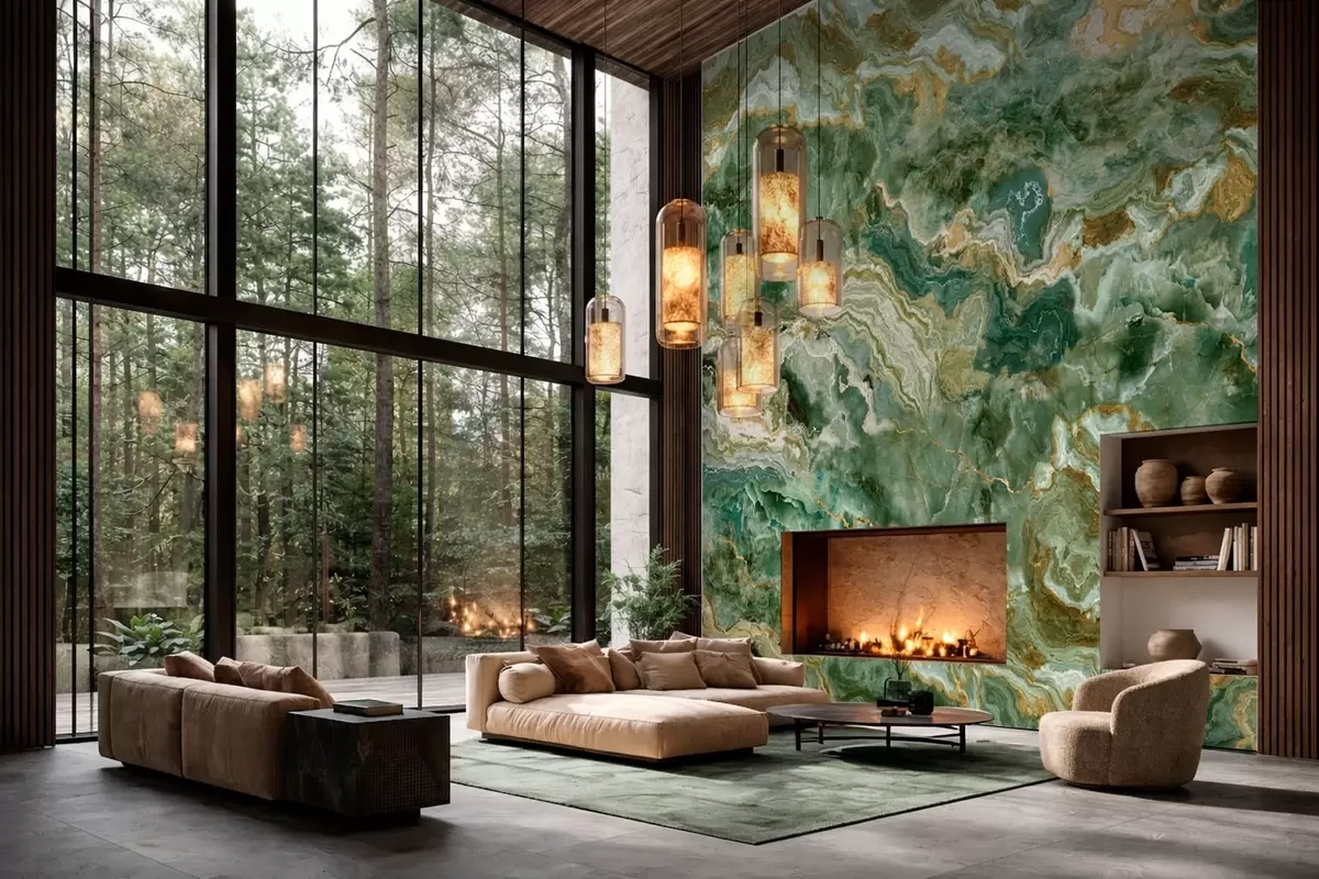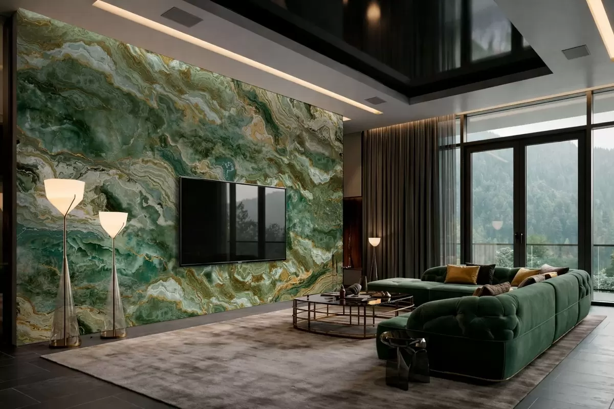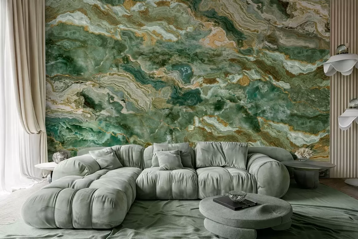 Fototapetak Zöld ónix textúra, áramló, réteges erezetű Nr. w05429