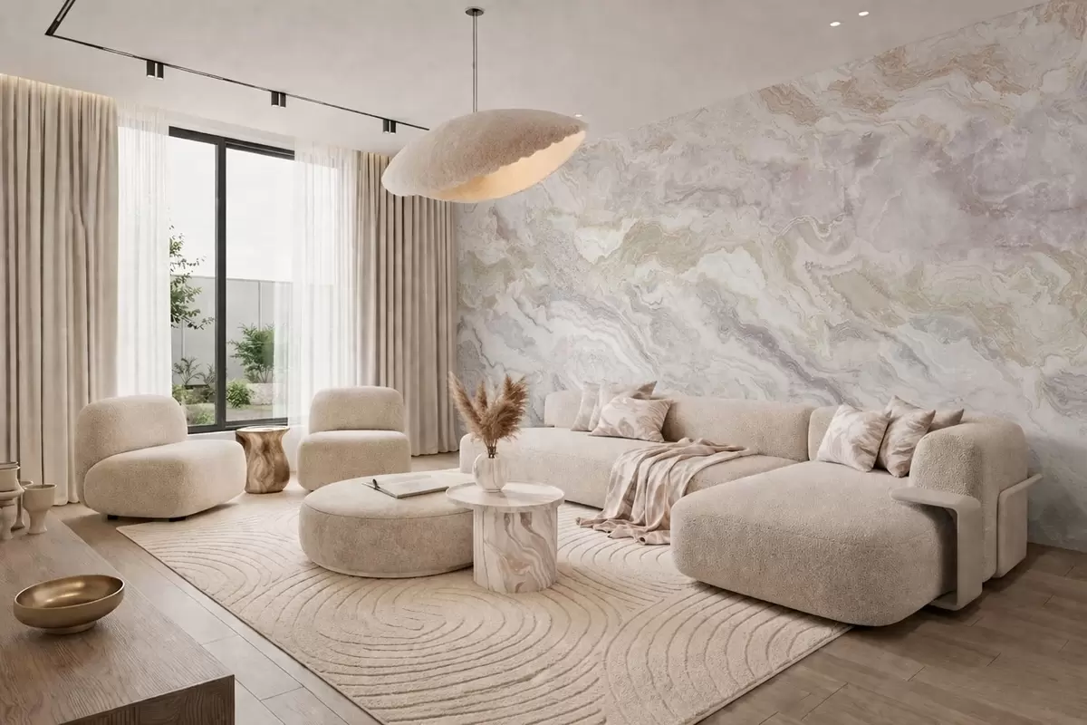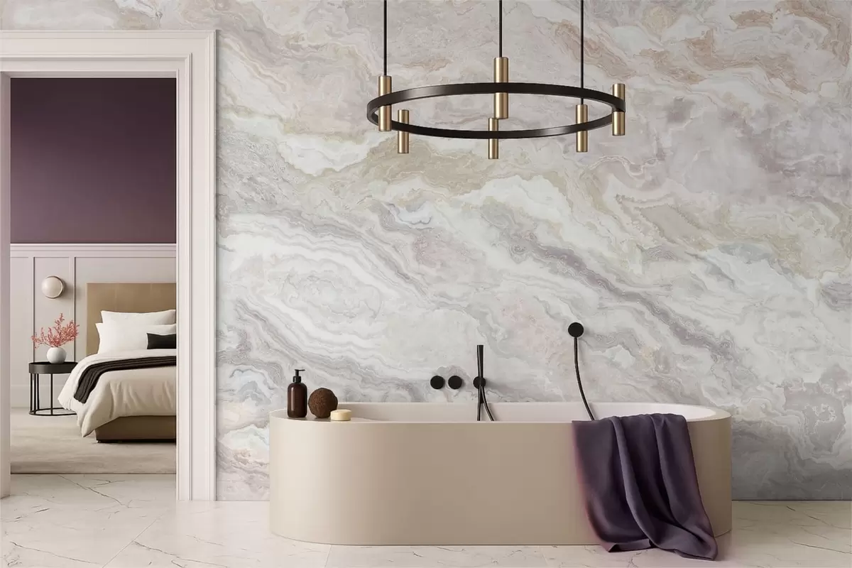 Fototapetak Világos ónix, bézs és szürke, egymásba folyó rétegekkel Nr. w05430