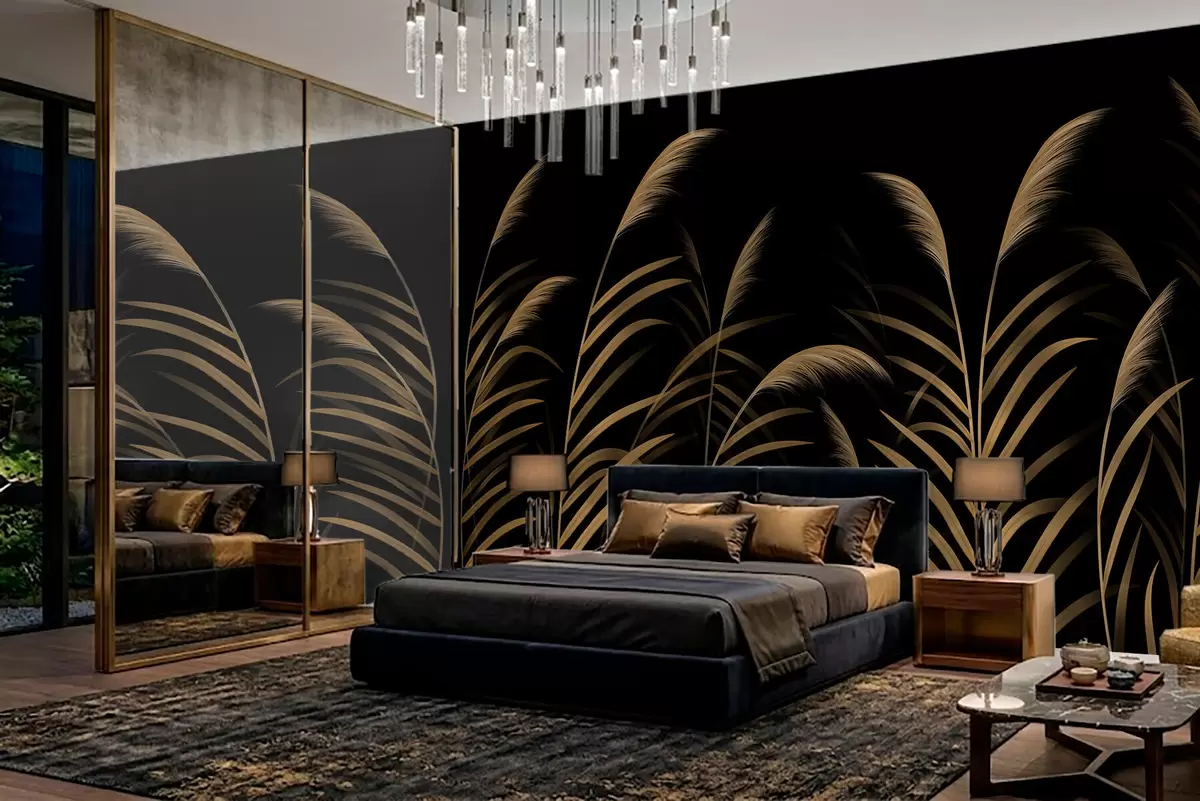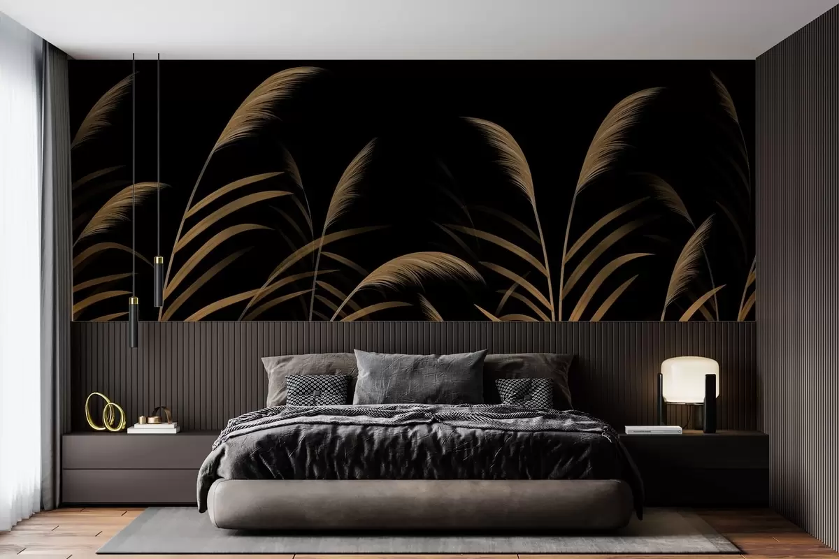 Fototapetak Minimalista fűszálak sötét háttér előtt, nagy kontrasztú Nr. w05432v3