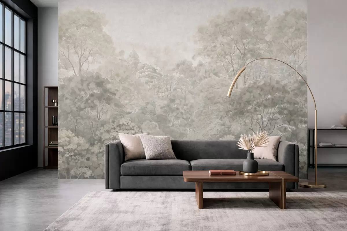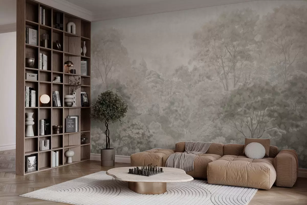 Fototapetak Régi stílusú, világos erdei táj pasztell színekben Nr. w05433v2