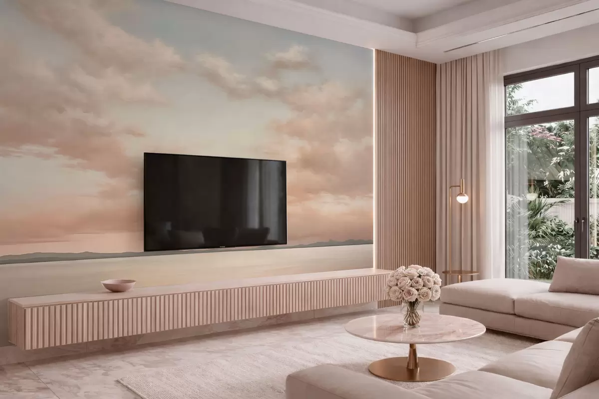 Fototapetak Minimalista tengerparti látkép pasztell felhőkkel Nr. w05516