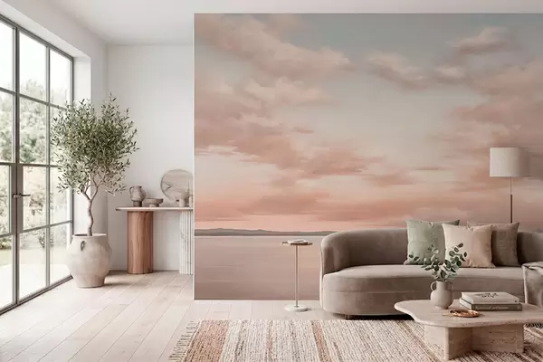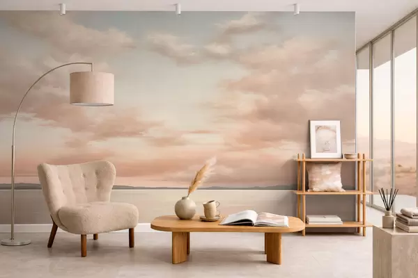 Fototapetak Minimalista tengerparti látkép pasztell felhőkkel Nr. w05516
