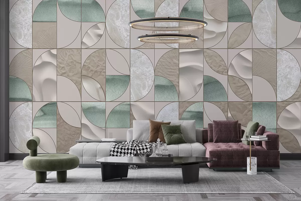 Fototapetak Zöld, bézs és fehér textúrák geometriai mintája ismétlődő absztrakt mintázatba rendezve Nr. w07928