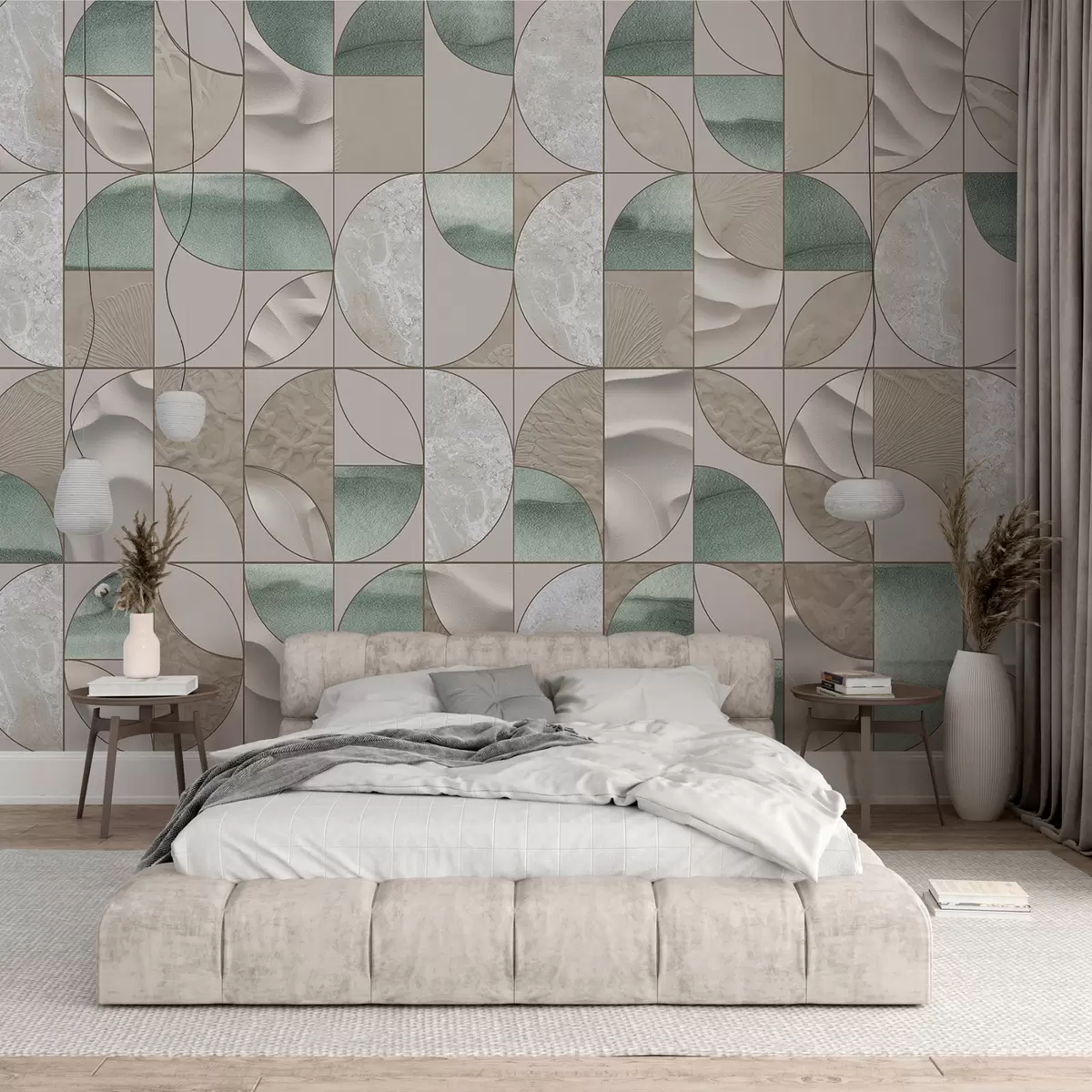 Fototapetak Zöld, bézs és fehér textúrák geometriai mintája ismétlődő absztrakt mintázatba rendezve Nr. w07928