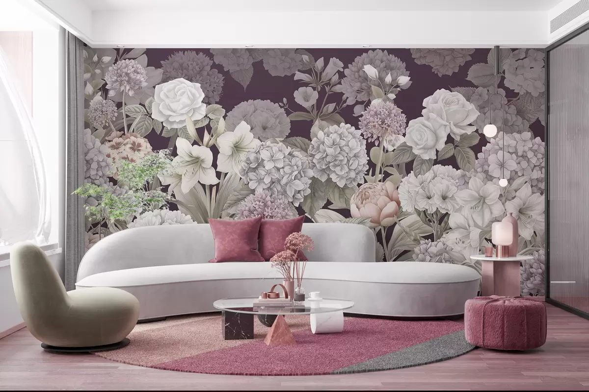 Fototapetak Varázslatos nyári kert bíbor háttéren Nr. w08140v2