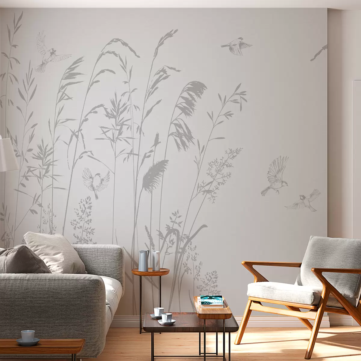 Fototapetak Növények és kismadarak természet minimalizmus szürke színű Nr. w08172v1