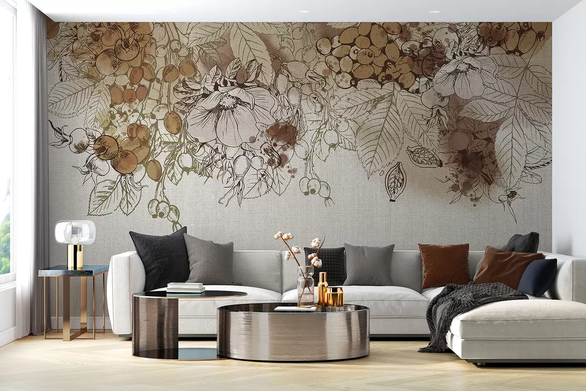 Fototapetak Őszi levelek és egyéb természetes elemek dekoratív nyomattal elrendezve, texturált háttér előtt Nr. w08190