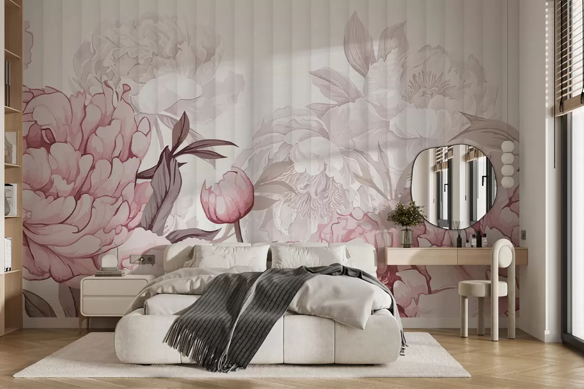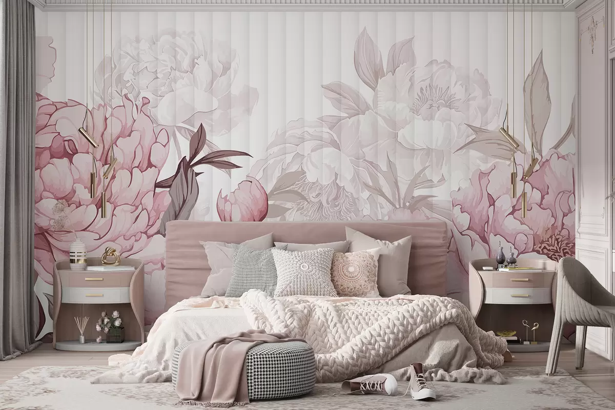 Fototapetak Nagy, finom rózsaszín és fehér pünkösdi rózsaszín virágok közeli nézete puha, texturált háttér előtt Nr. w08255