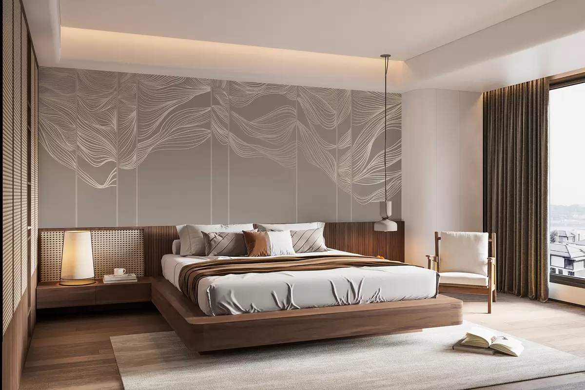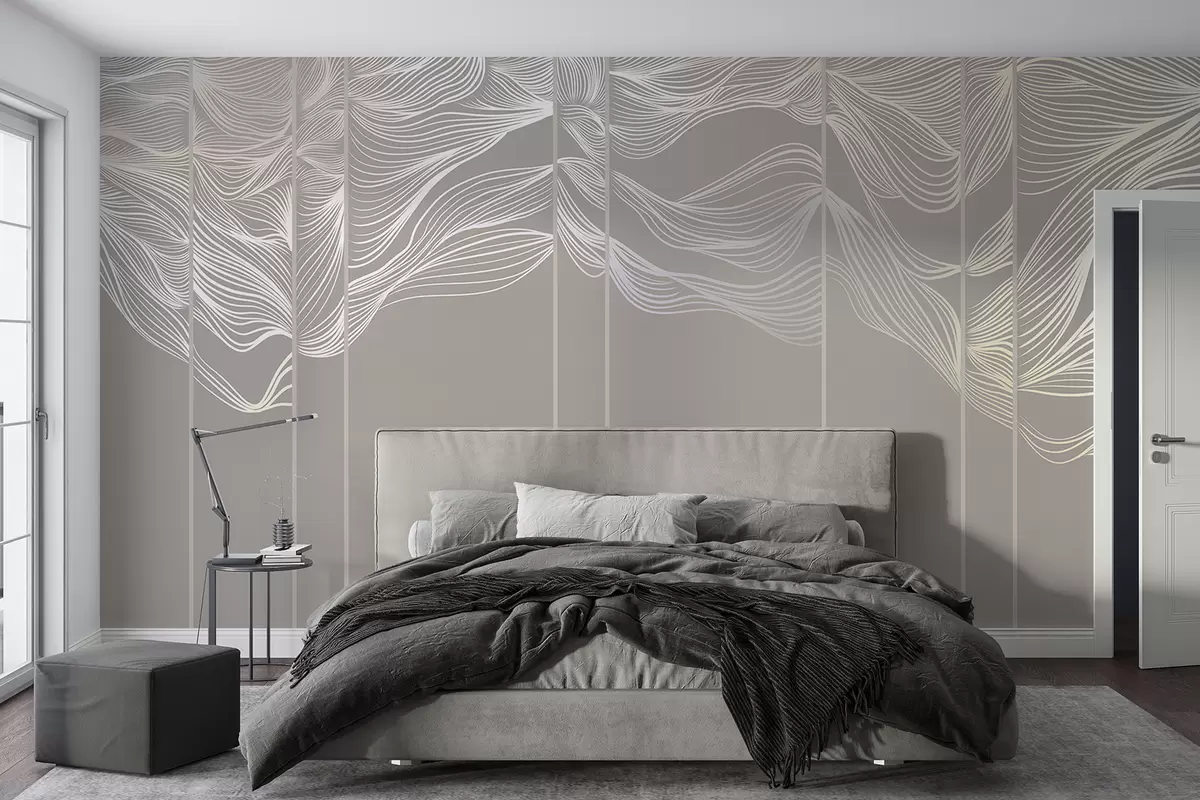 Fototapetak Folyó fehér absztrakt vonal hullámok világosbarna háttér előtt Nr. w08263