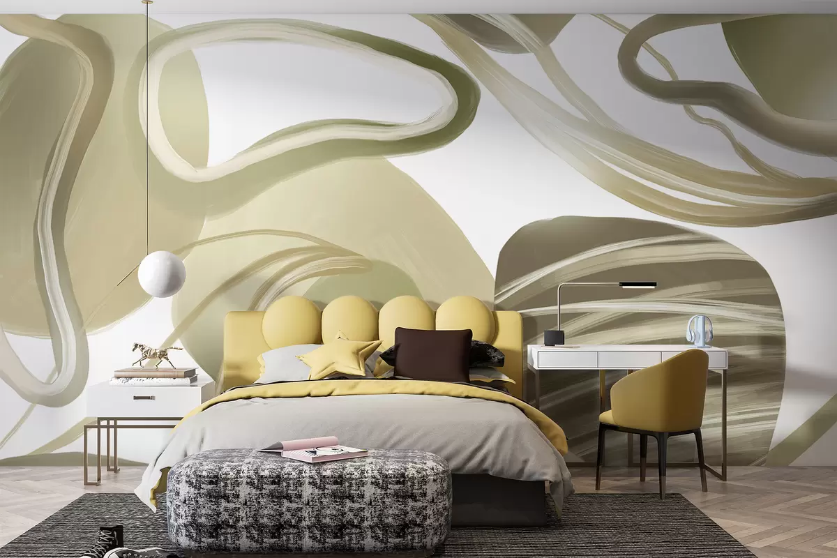 Fototapetak Absztrakt kavargó formák és görbék a bézs árnyalataiban, dinamikus és áramló kompozíciót alkotva Nr. w08279