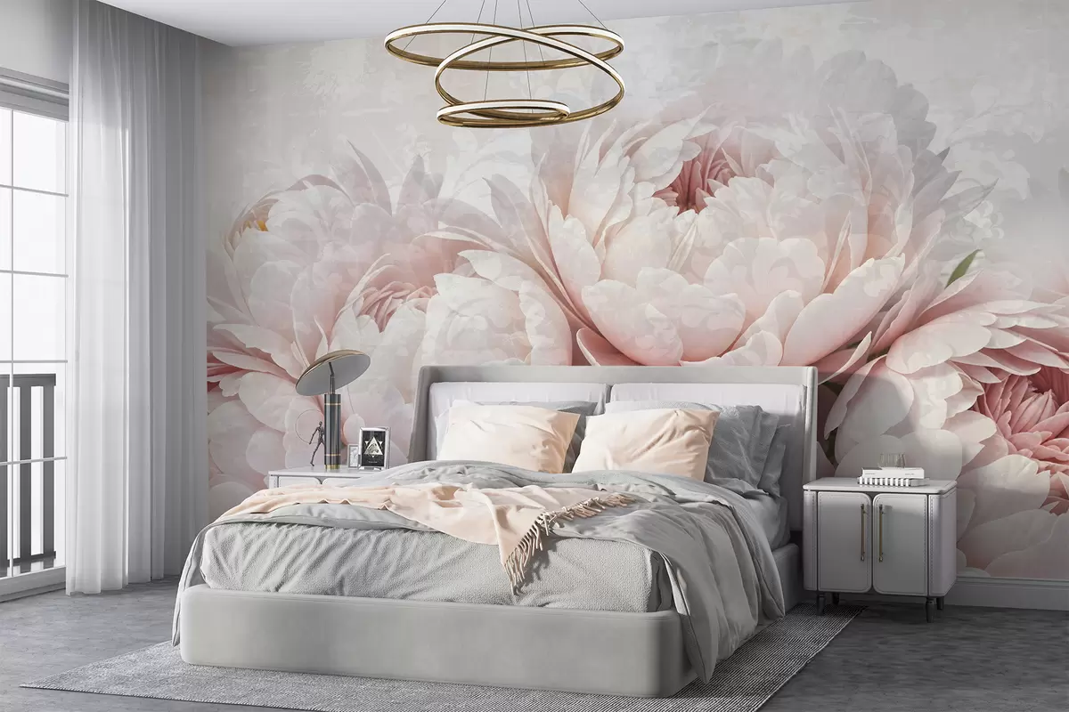 Fototapetak Lágy rózsaszín bazsarózsák finom szirmokkal egy könnyű textúrájú vintage háttér előtt Nr. w08312
