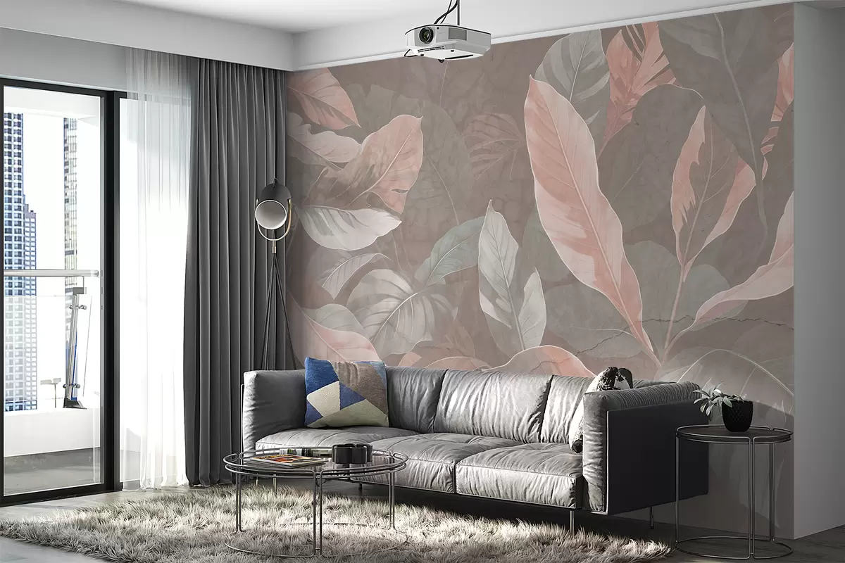 Fototapetak Absztrakt nyomat fehér, bézs és barackszínű finom levelekkel, lágy, tompa textúrájú háttéren Nr. w08322v1