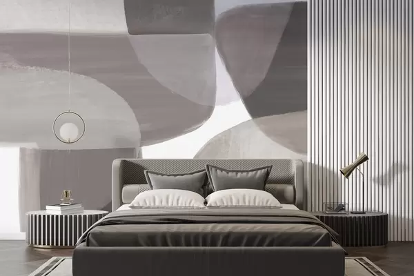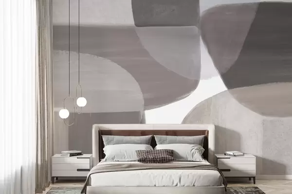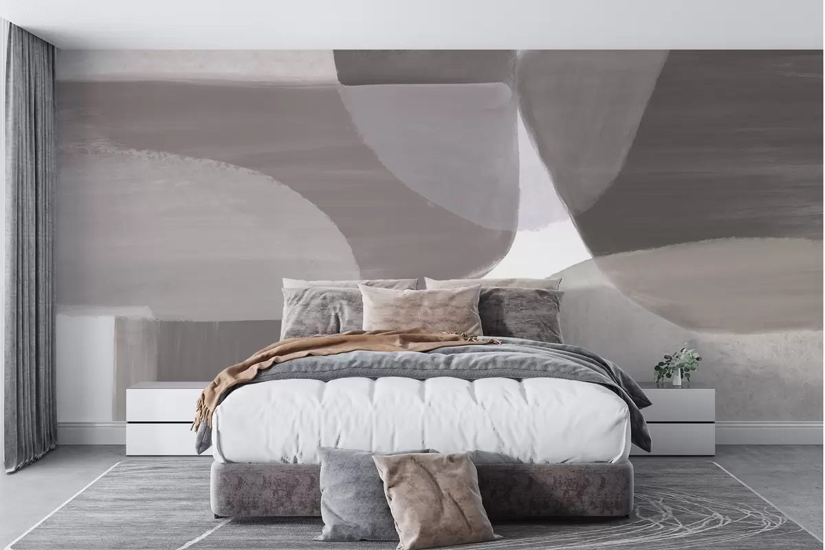 Fototapetak Monokróm absztrakt nyomat, egymást átfedő minimalista formákkal és alakzatokkal a szürke és a bézs árnyalataiban Nr. w08410v1