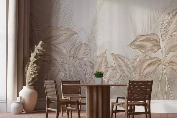 Fototapetak Elegáns fehér és bézs színű pálmalevelek világos, textúrázott háttér előtt Nr. w08434