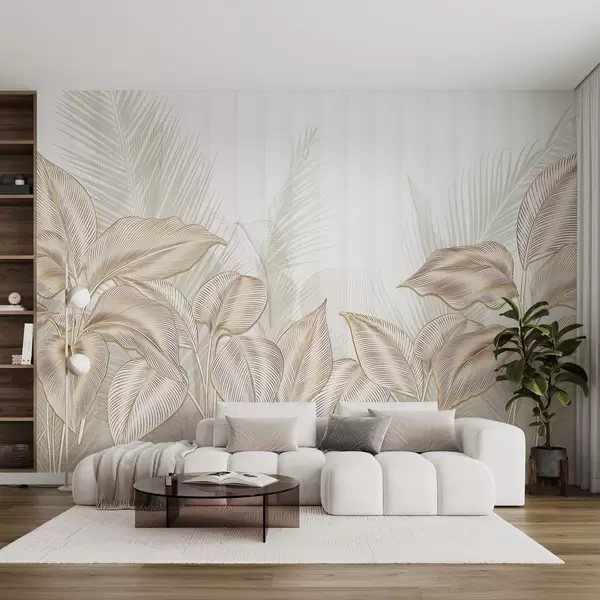 Fototapetak Elegáns fehér és bézs színű pálmalevelek világos, textúrázott háttér előtt Nr. w08434