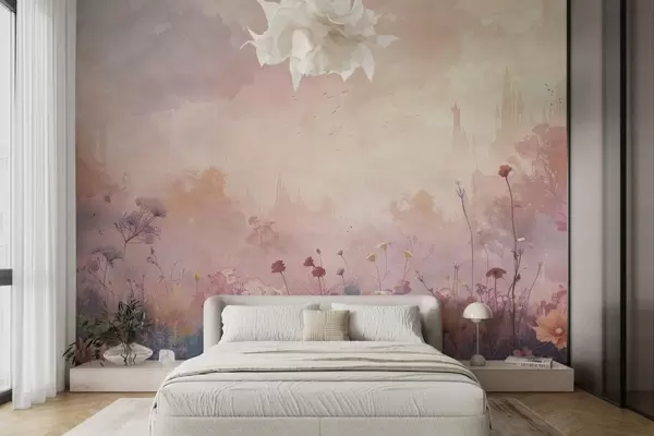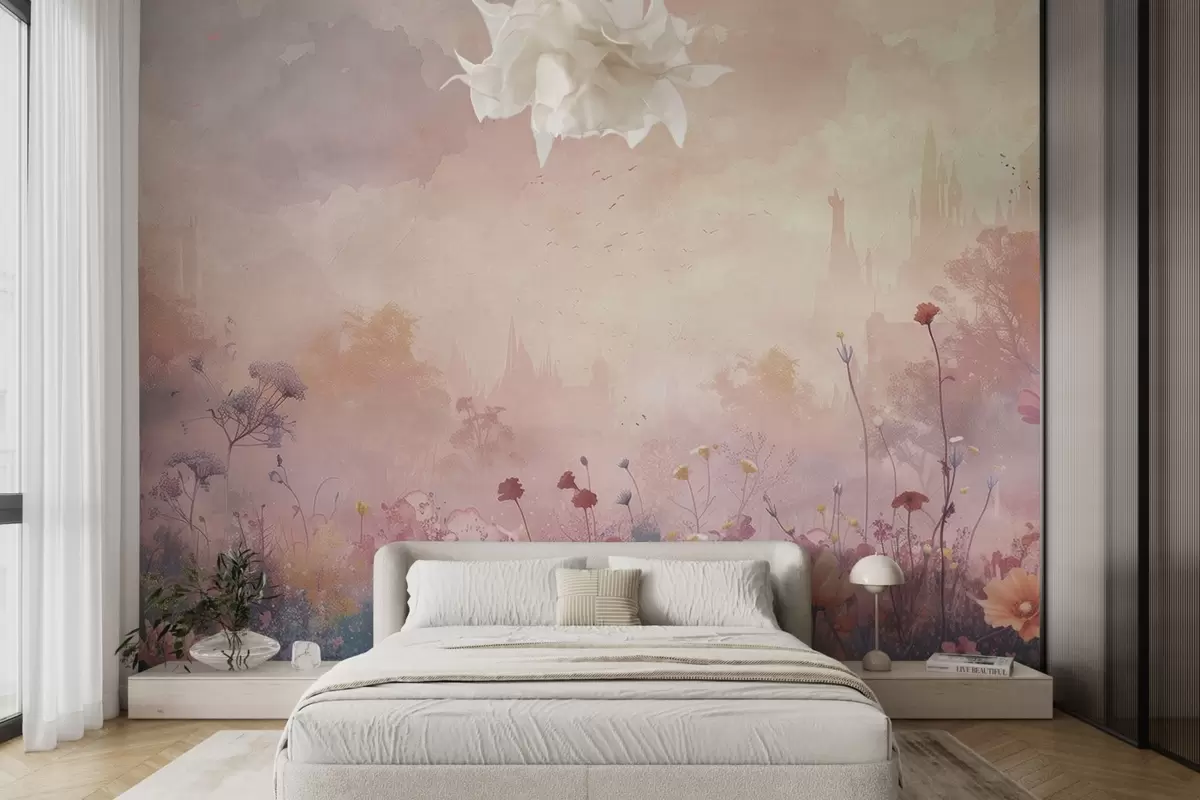 Fototapetak Vadvirágok vár sziluett háttér Nr. w08478