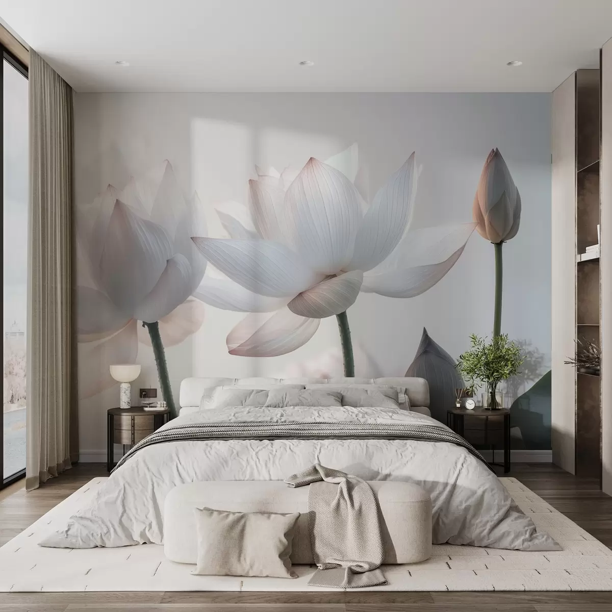 Fototapetak Szelíd lótuszvirágok szirmokkal és levelekkel Nr. w08488