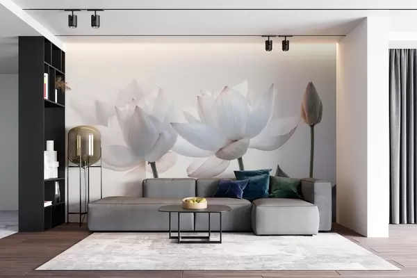 Fototapetak Szelíd lótuszvirágok szirmokkal és levelekkel Nr. w08488
