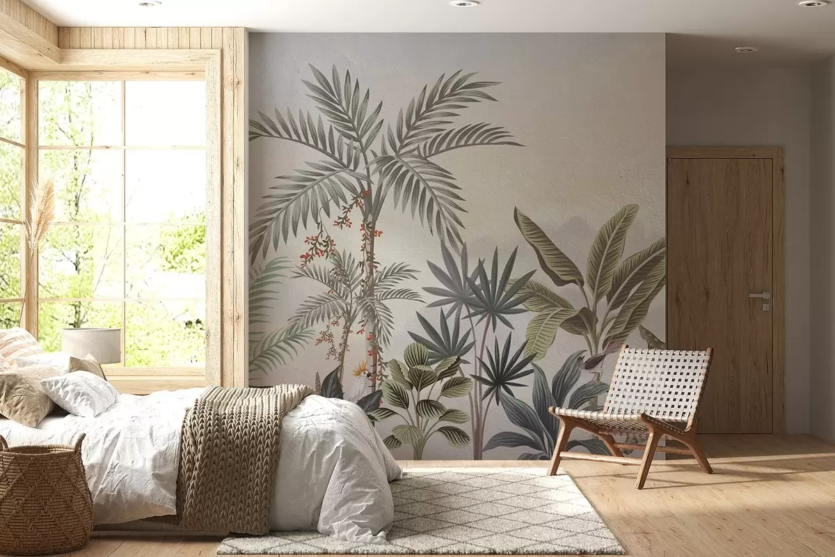 Fototapetak Trópusi dzsungel pálmákkal és színes madarakkal Nr. w08496