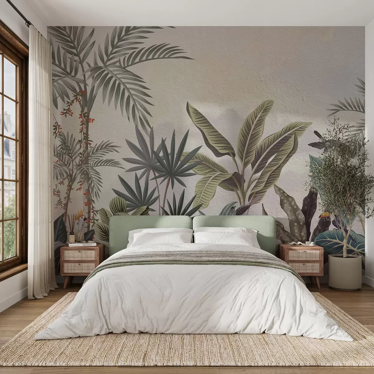 Fototapetak Trópusi dzsungel pálmákkal és színes madarakkal Nr. w08496