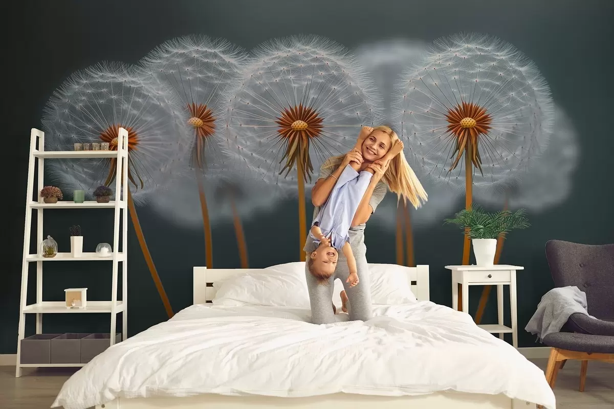 Fototapetak Légies pitypangok sötét természetes háttér előtt Nr. w08498