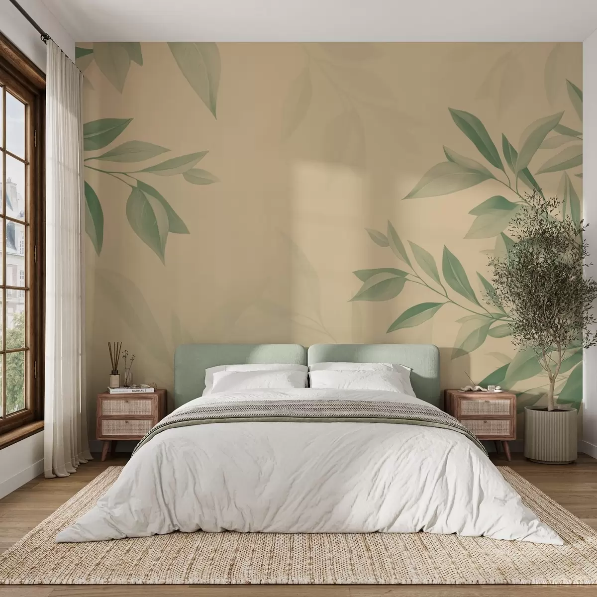 Fototapetak Zöld levelek lágy meleg bézs háttérrel Nr. w08499v2