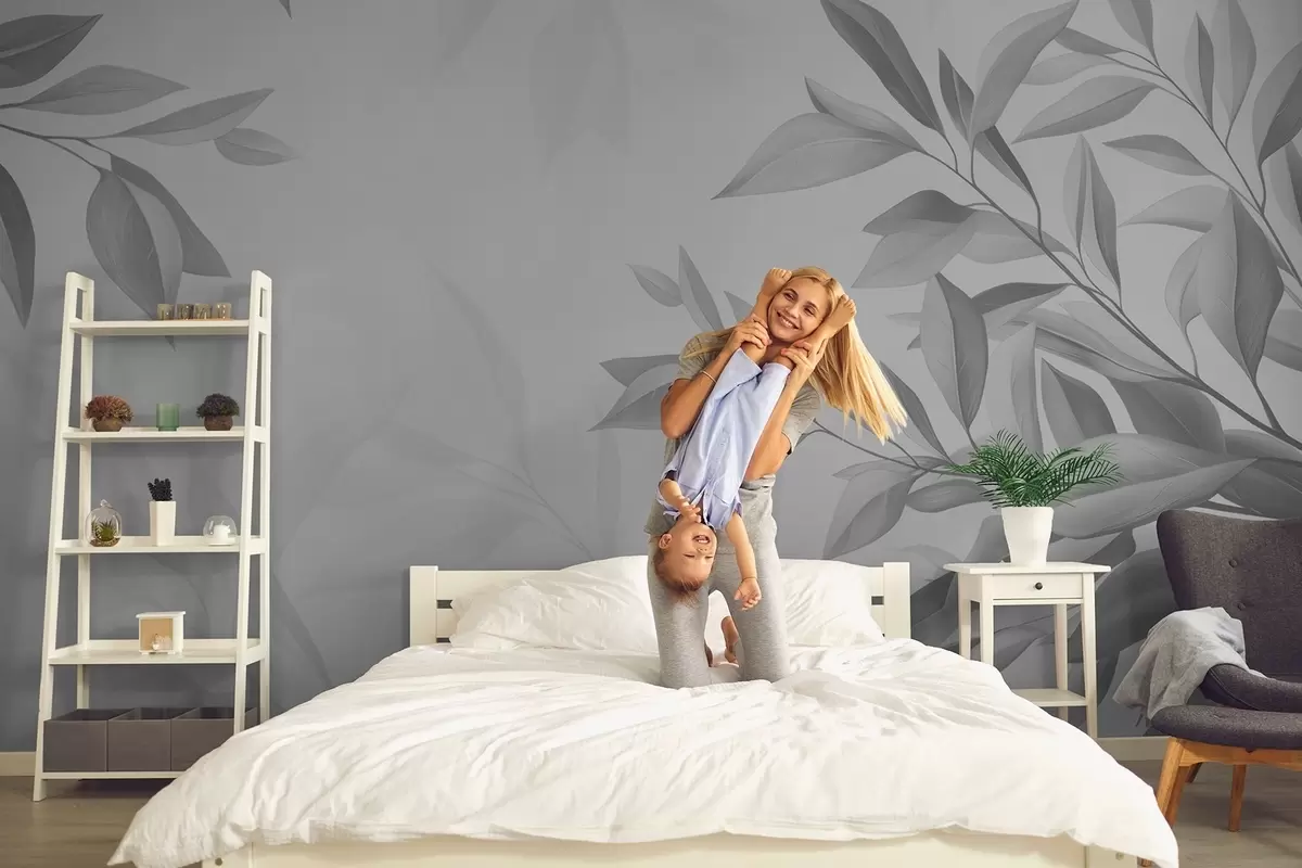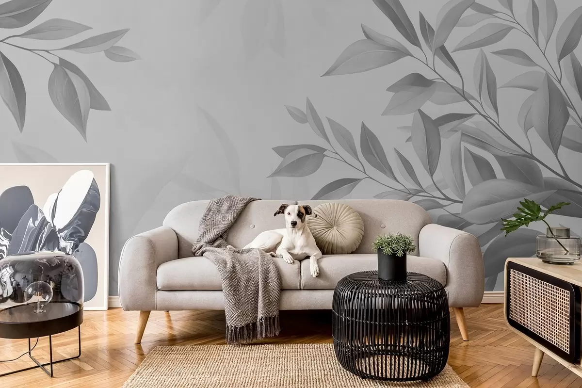 Fototapetak Szürke ágak levelekkel szürke háttéren Nr. w08499v3