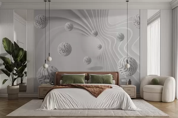 Fototapetak 3D szürke absztrakció gömbökkel és mélységhatással Nr. w08553
