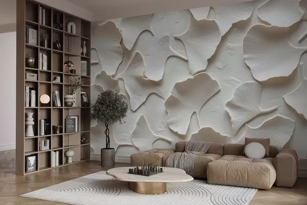Fototapetak Ginkgo levelek finom dombornyomásával ellátott stukkó fehér alapon Nr. w08560v1