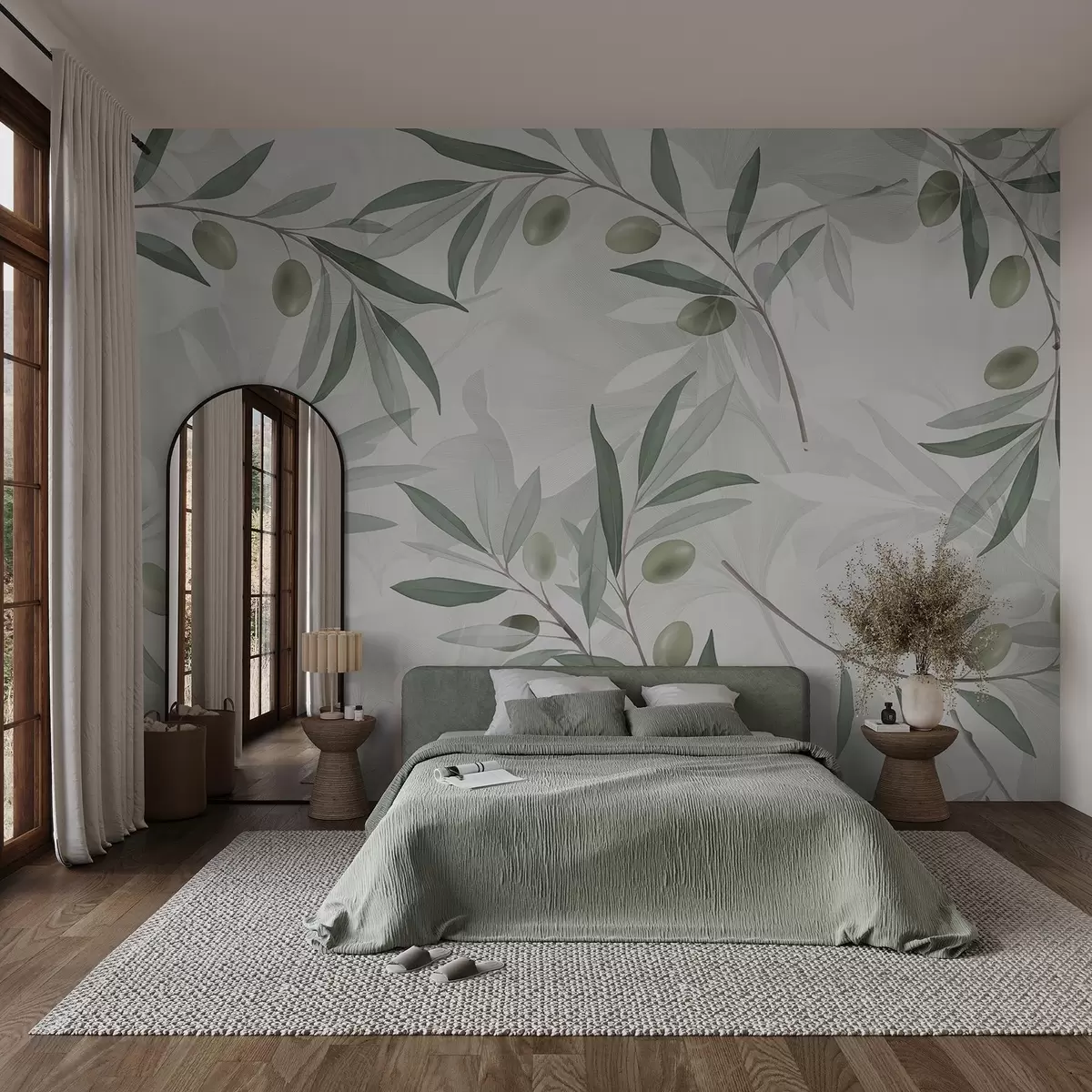 Fototapetak Olajbogyó ágak zöld levelekkel és olajbogyóval világos háttéren Nr. w08576