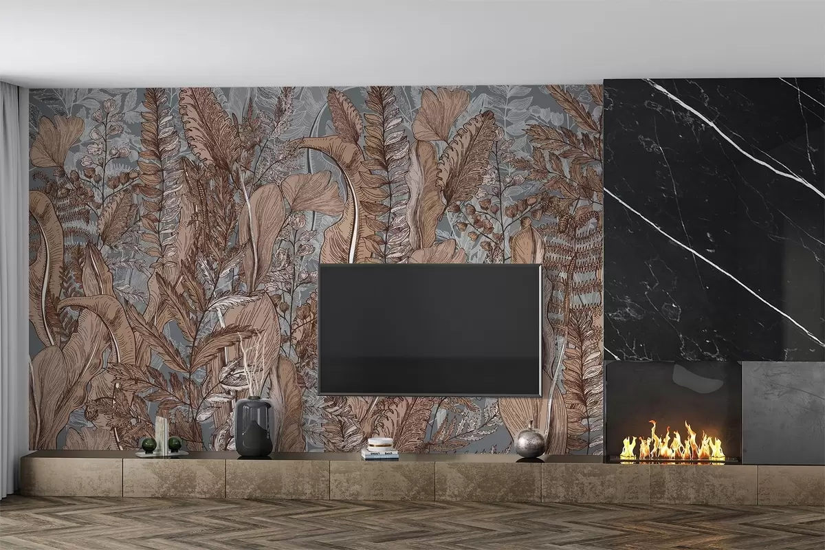 Fototapetak Egy buja, zöldellő erdő különböző páfrányfajtákkal, levelekkel és lombokkal a barna, kék és szürke árnyalataiban Nr. w08579v1