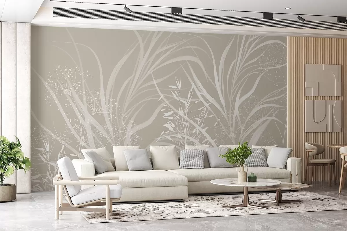 Fototapetak Finom, modern, minimalista, fehér virágos nyomtatás világos pasztell-bézs háttéren Nr. w08583