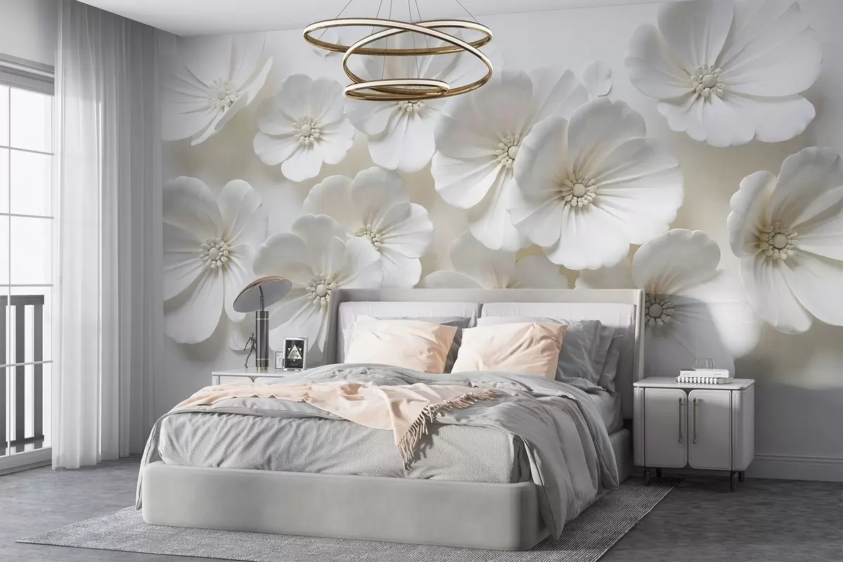 Fototapetak Fehér virágok finom szirmokkal és központokkal világos háttér előtt Nr. w08587