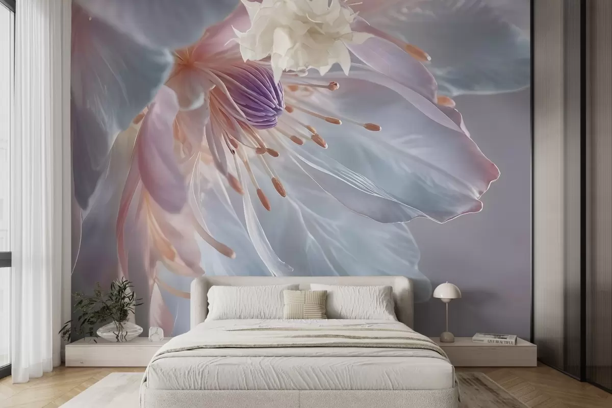 Fototapetak Közelkép egy finom, pasztellszínű virágról, lágy, áttetsző szirmokkal és élénk közepével Nr. w08605
