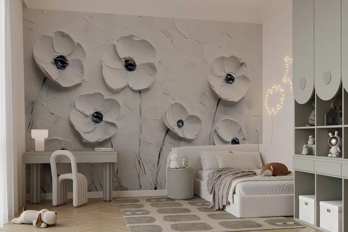 Fototapetak Elegáns szürke virágok ecsetvonás utánzással Nr. w08632