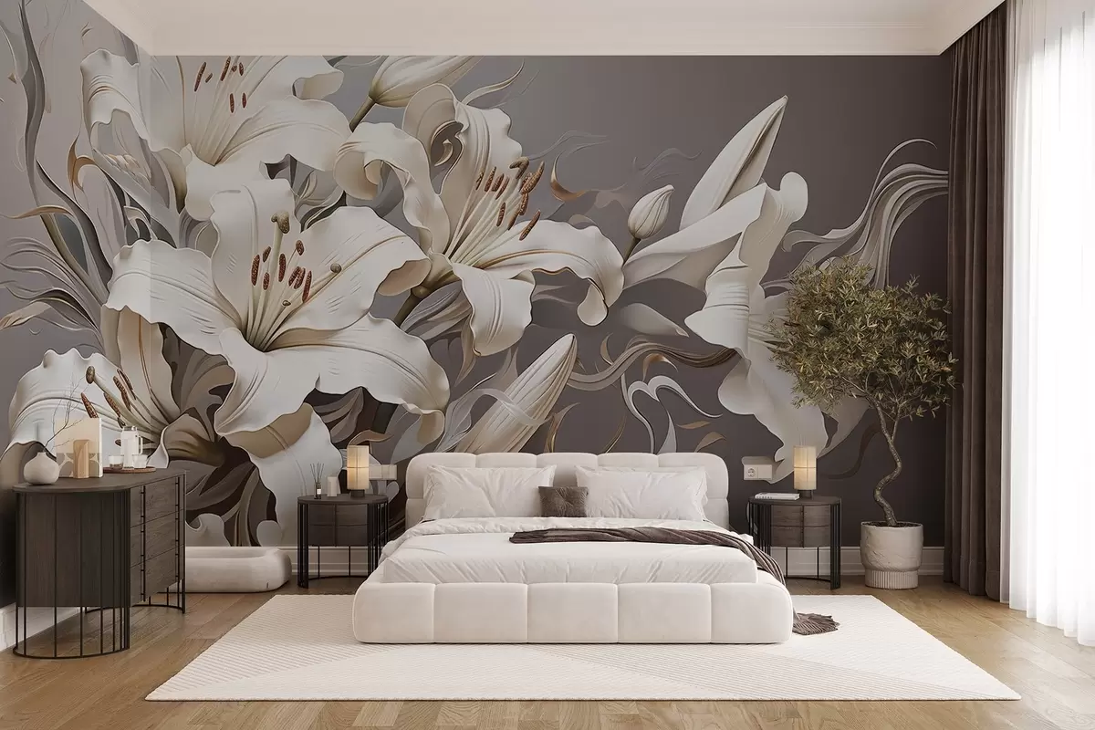 Fototapetak Kifinomult fehér liliomok pasztell árnyalatokban Nr. w08633v1