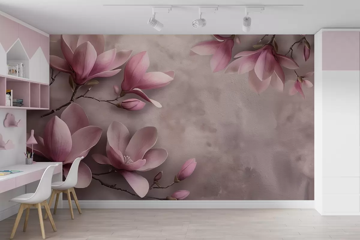 Fototapetak Finom rózsaszín magnóliák egy beton falon Nr. w08636
