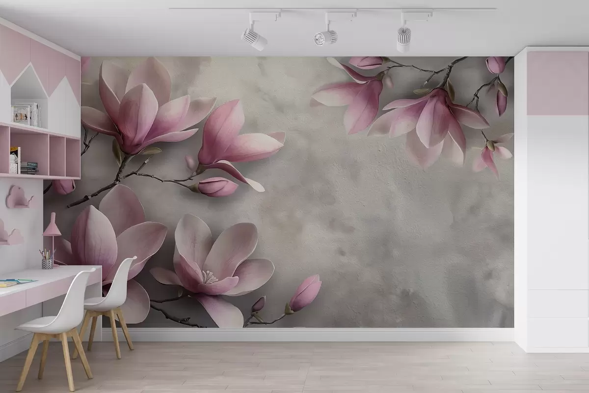 Fototapetak Finom rózsaszín magnóliák egy szürke színű beton falon Nr. w08636v1