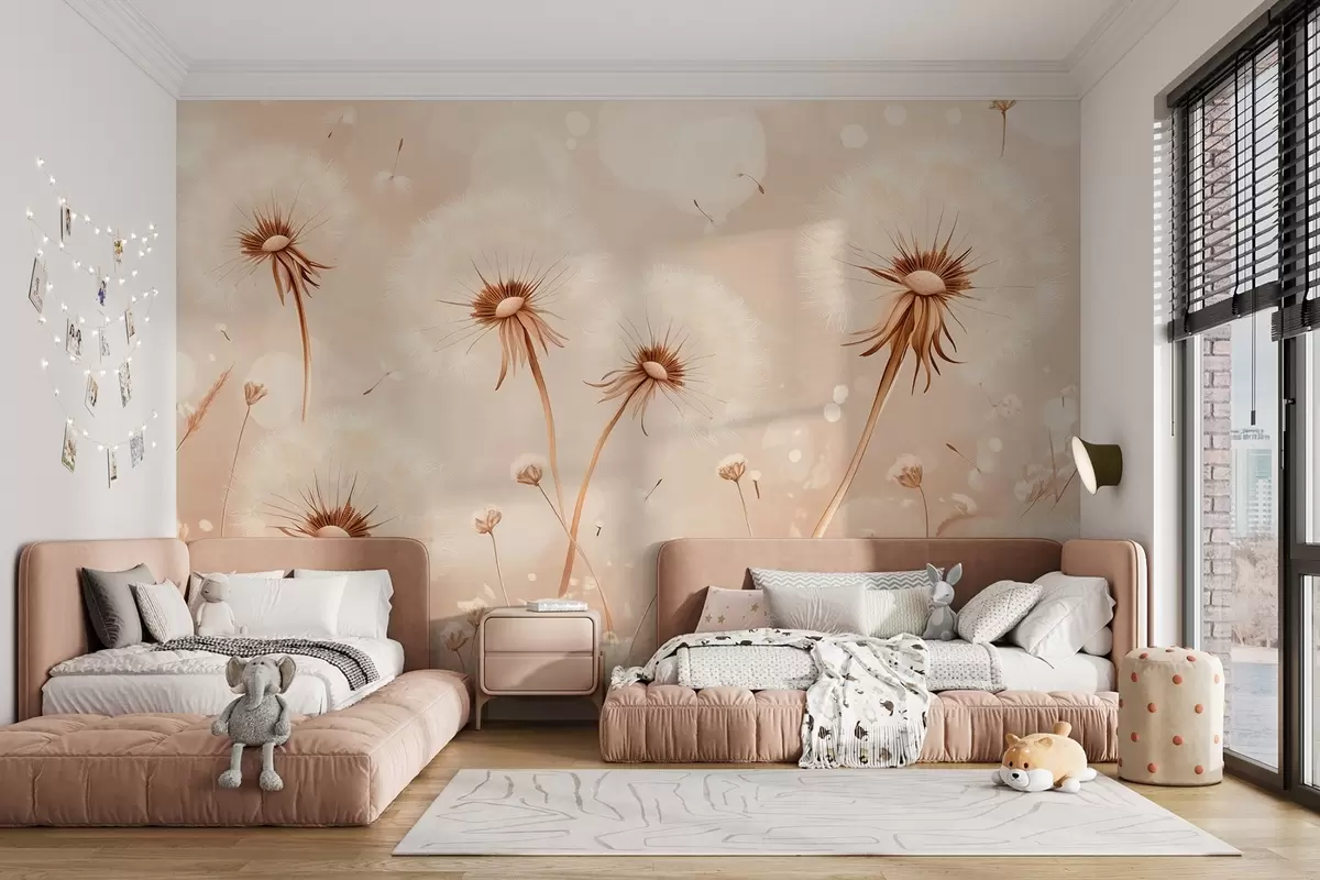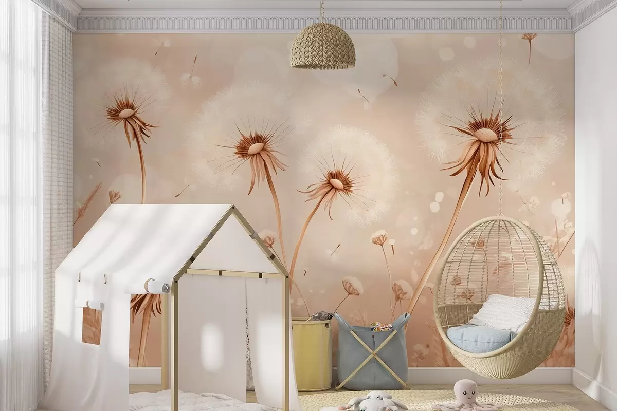 Fototapetak Elegáns pitypang és vadvirágok festészeti stílusban, meleg tónusokban Nr. w08657