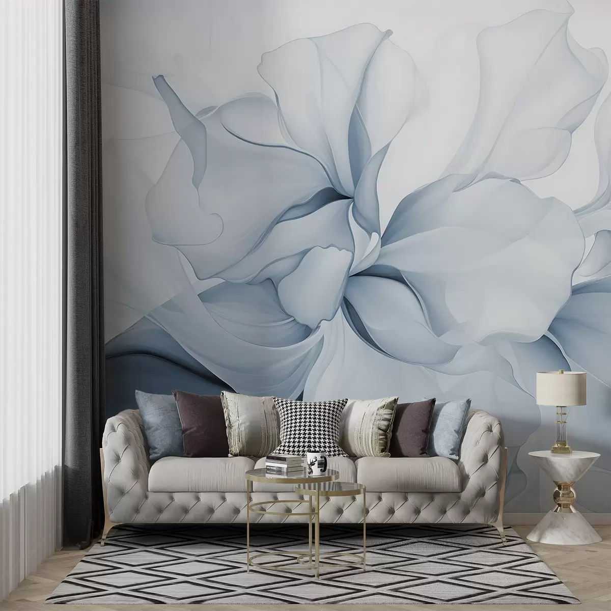 Fototapetak Folyó absztrakt virágszirmok áttetsző és rétegzett formák pasztell színekben, kék árnyalatokban Nr. w08701v2