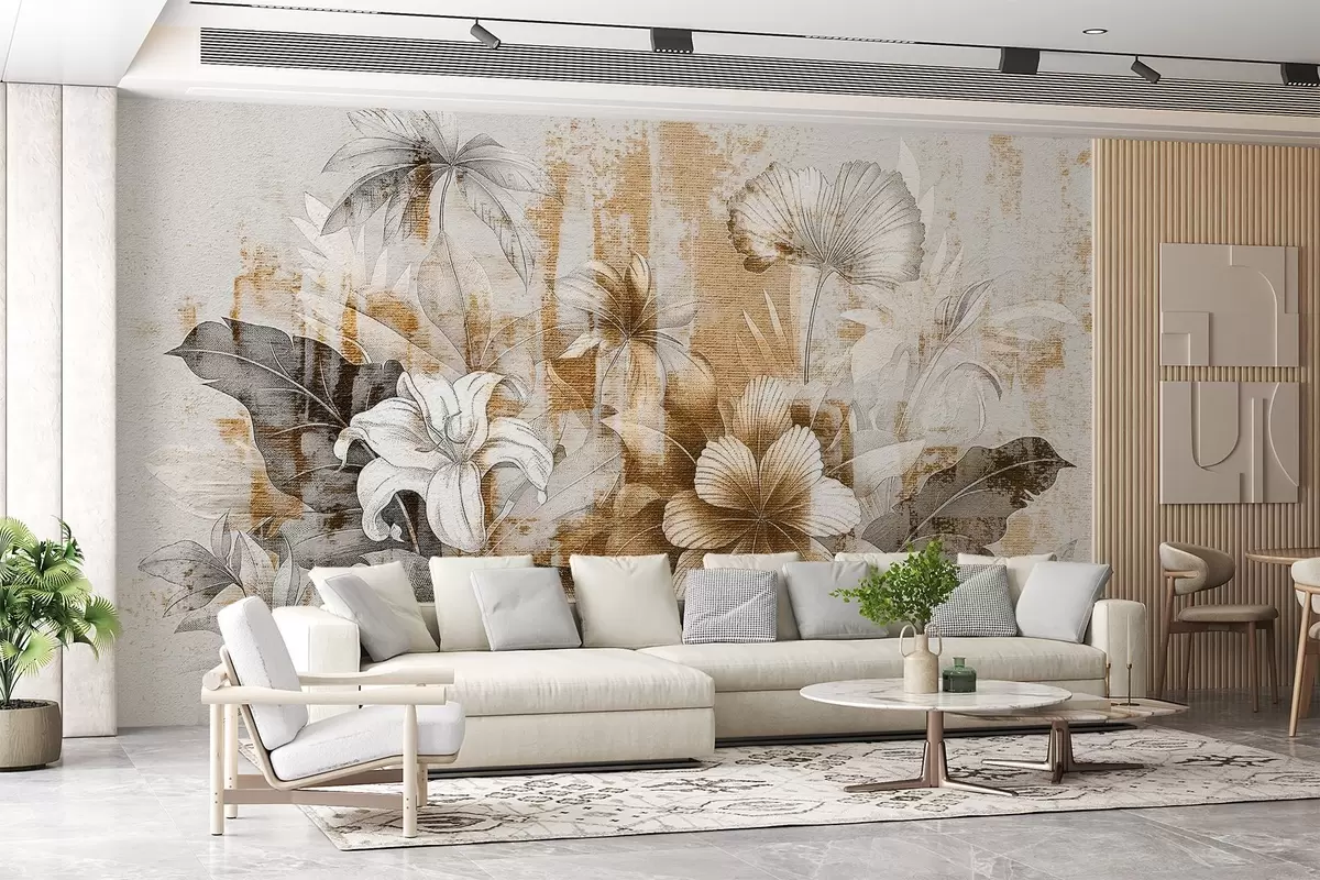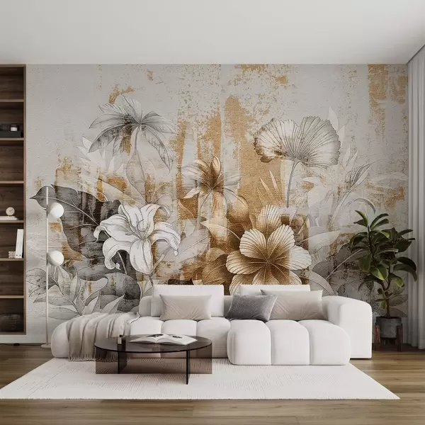 Fototapetak Vintage design egzotikus virágokkal és növényekkel Nr. w08767